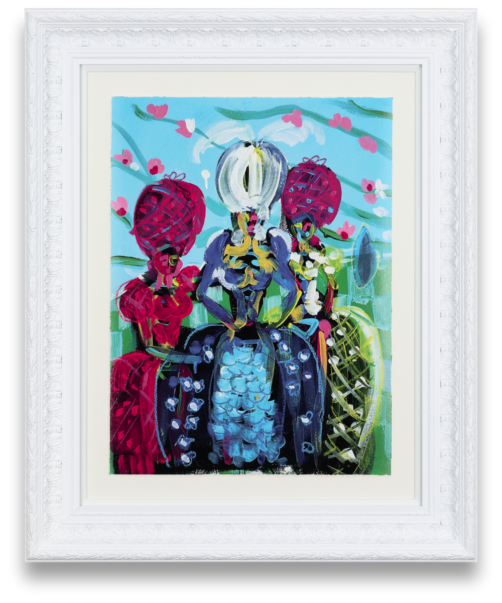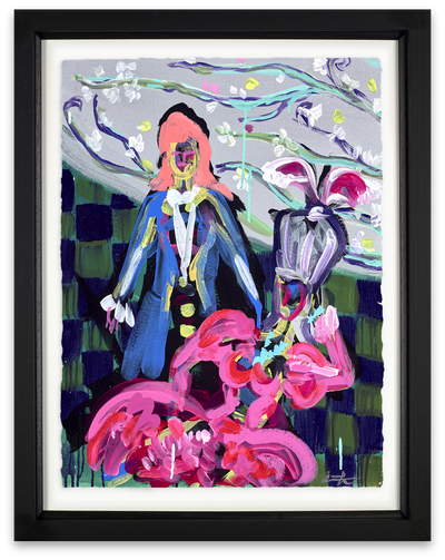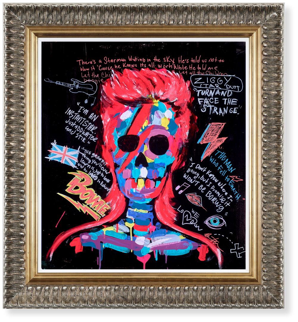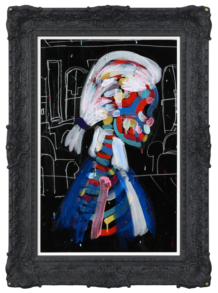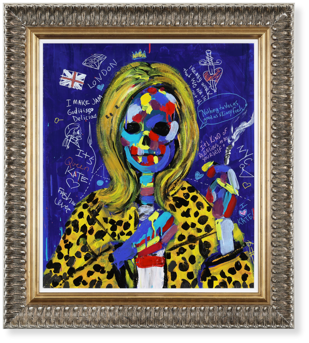 Bradley Theodore is a global force in contemporary art, whose work seamlessly blends high fashion, history, and street culture into something uniquely his own. His vibrant, daring depictions of iconic figures from Anna Wintour and Karl Lagerfeld to Frida Kahlo or Queen Elizabeth II are instantly recognisable; with his signature bold, chromatic brushwork, he gives their famous faces a fresh, edgy reimagining, striping them down to their ‘bare bones’, as he seeks to reveal the humanity beneath the public personas.