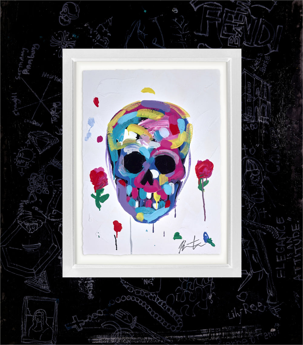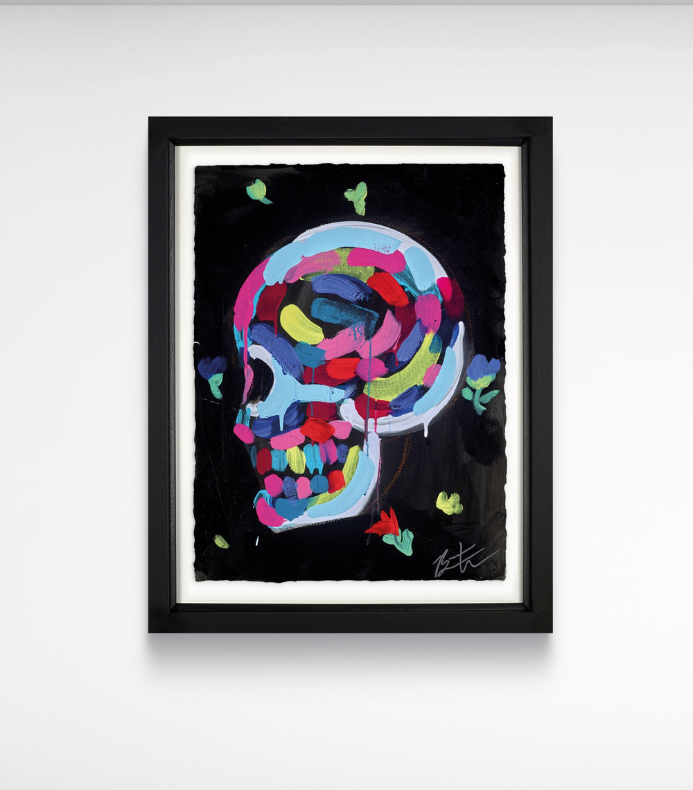 This extensive collection of original works features fashion-inspired imagery and bold motifs—colourful dollar signs, skulls, and portraits of design icons and celebrities—in a vibrant celebration of culture and style.