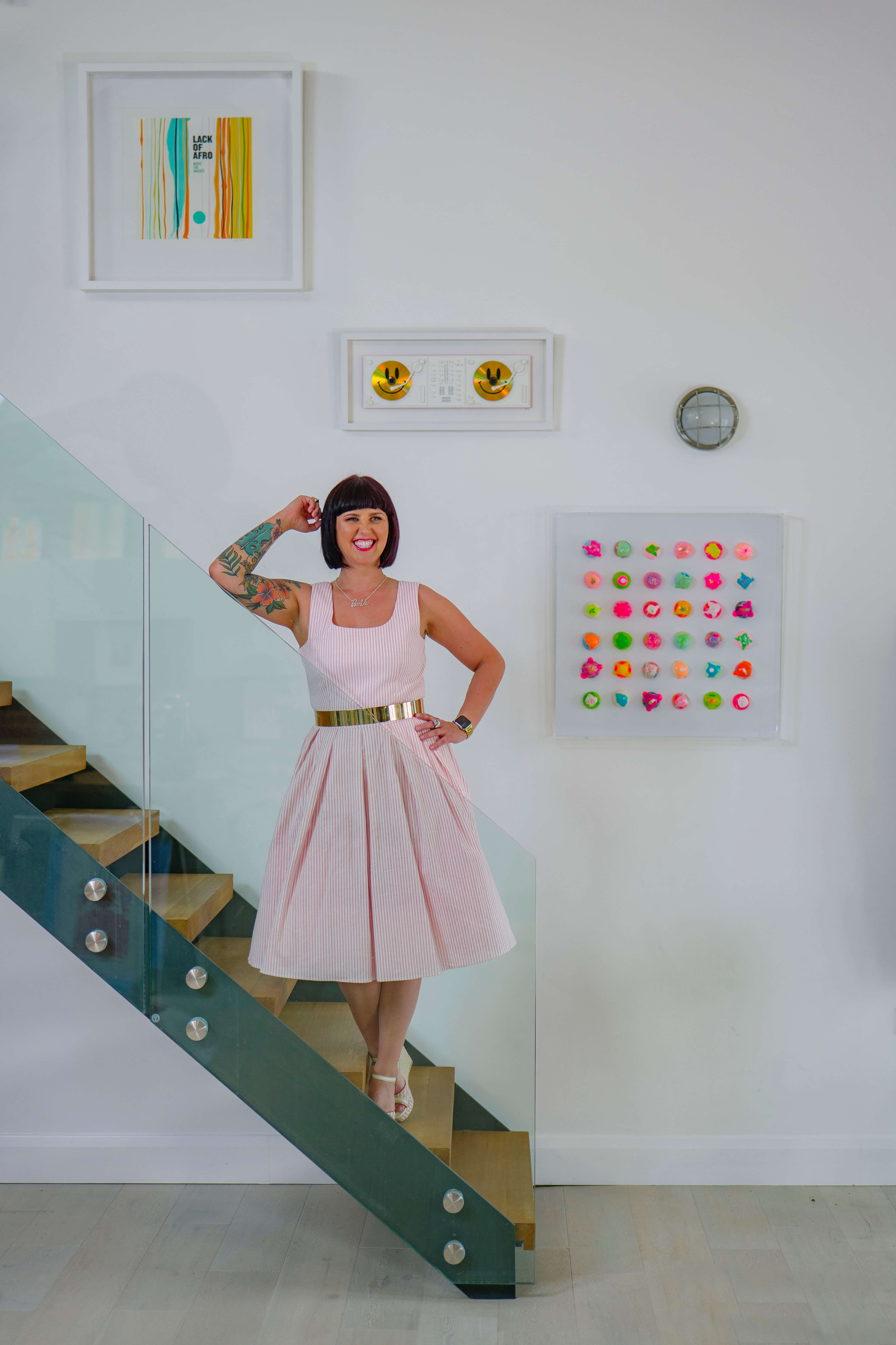 Emma Gibbons’s exuberant, mixed-media artworks embody the joy and energy of popular culture. Known as ‘the glittering queen of Pop Art’, she is Inspired by festivals, nightlife, and her personal journey from party life to sobriety, she uses her rainbow-coloured art to celebrate creativity and transformation, channelling her emotions of positivity nostalgia, and curiosity, to deliver uplifting, cathartic experiences.