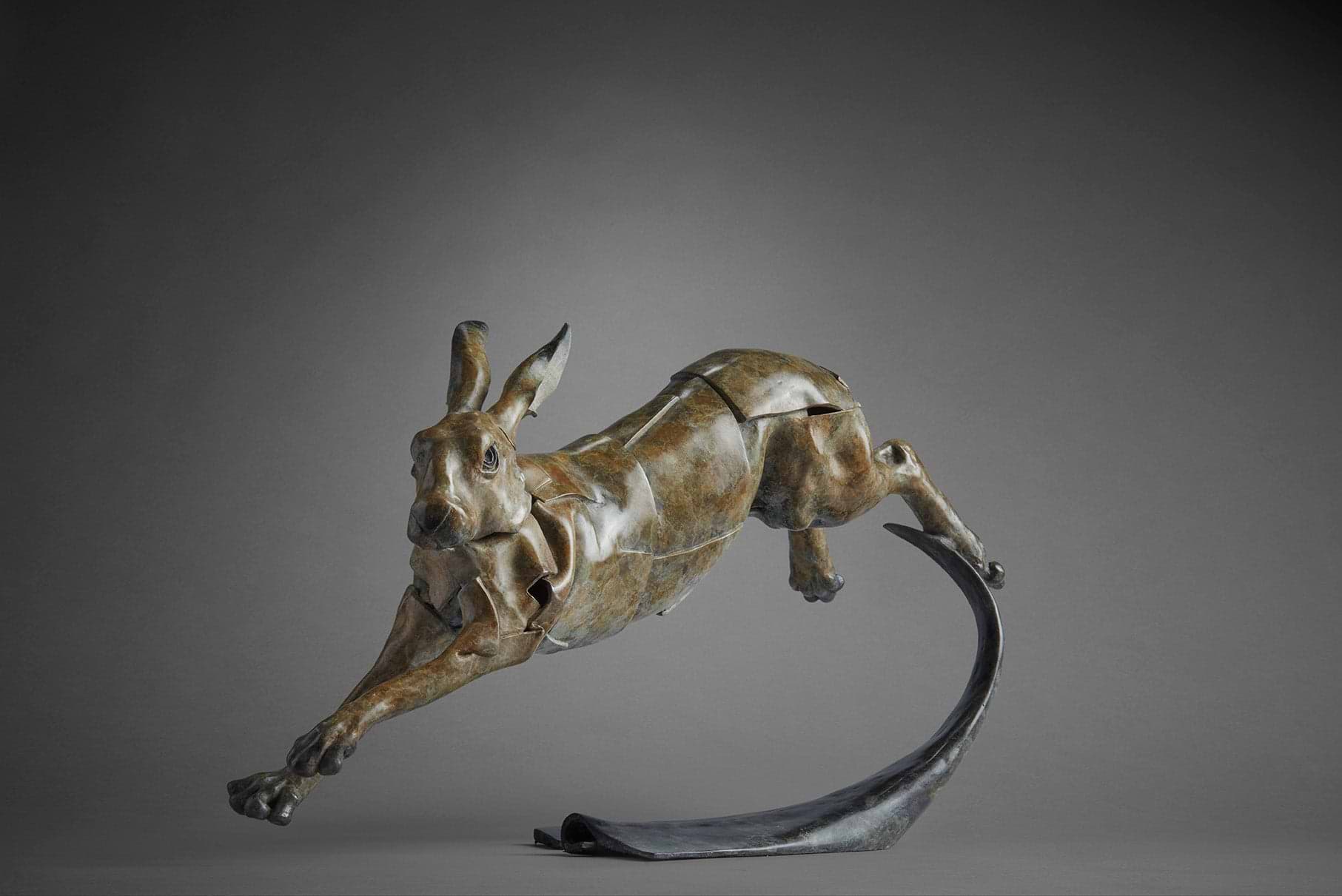 Since winning the Diana Brooks Prize with Art for Youth in 2017, Gordon has been making his mark as a rising star in wildlife sculpture. Based in North London, he has travelled extensively to observe the behaviour of his subjects in their natural environment, whether that may be the British countryside, or further afield in Sri Lanka or South Africa where he enjoyed a three month artist residency in Limpopo. Out on location he studies anatomy at first hand, sketching, photographing and, where possible, creating small maquette studies. He takes this source material back to his studio to work up the pose and form in the final pieces.