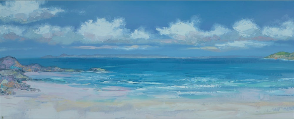 Judith’s latest work is an exuberant celebration of the Scottish landscape, from the Campsie Fells and Ben Lomond which she can see from her own home, across to East Lothian and North Berwick, through the farmland of Ayrshire and the mountains of Argyll on the west, and up to the islands of Skye and Harris via the ‘Road to the Isles’. Every painting tells a story of a single moment, of what it was like to be there on a particular day at a particular time.