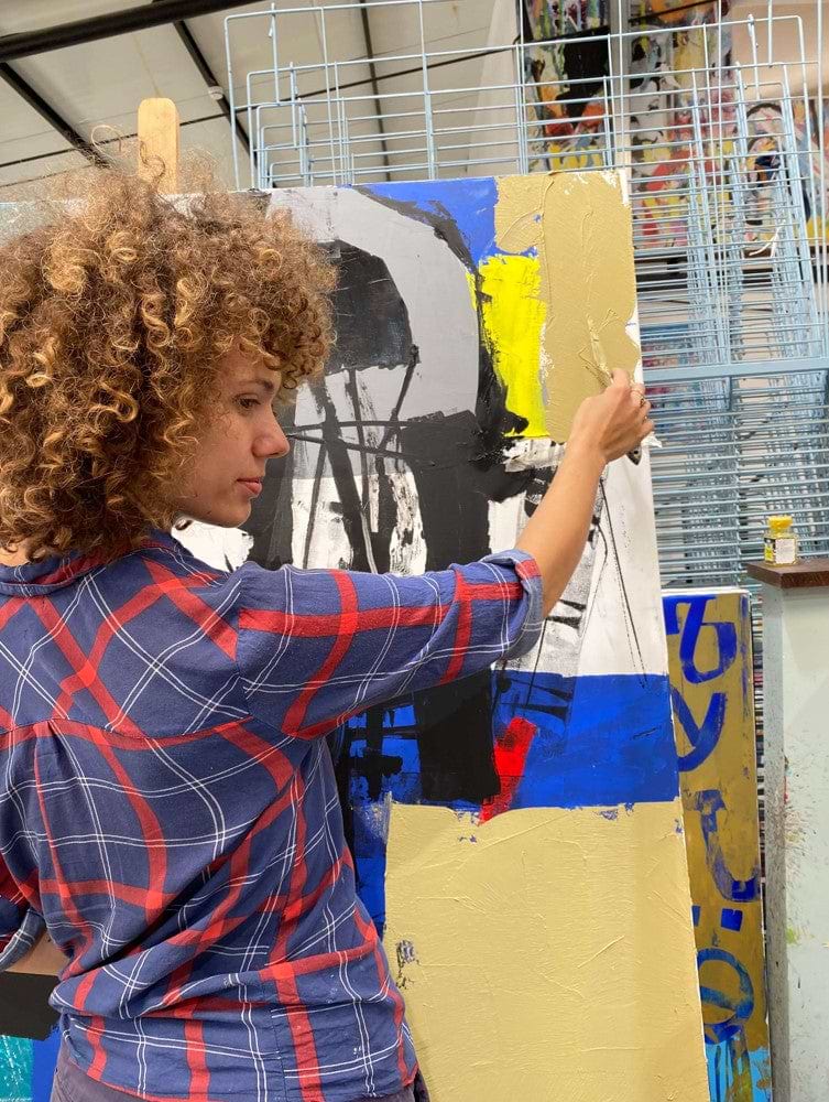 Her repertoire ranges through abstracts, landscapes, figurative compositions and mixed media collages; merging the raw primal energy of Abstract Expressionism with pop culture, narrative, myth, politics, graffiti and more her work is at the cutting edge of interior trends and exudes an infectious energy and passion which has secured her an enthusiastic following.