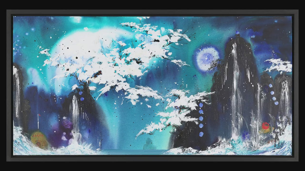 Her works also incorporate a range of materials, such as acrylics, watercolors, pastels, and collage elements, which add a dynamic and tactile quality to her pieces. Overall, Akiyama's style is both elegant and expressive, and her works often evoke a sense of joy and wonder in those who view them.